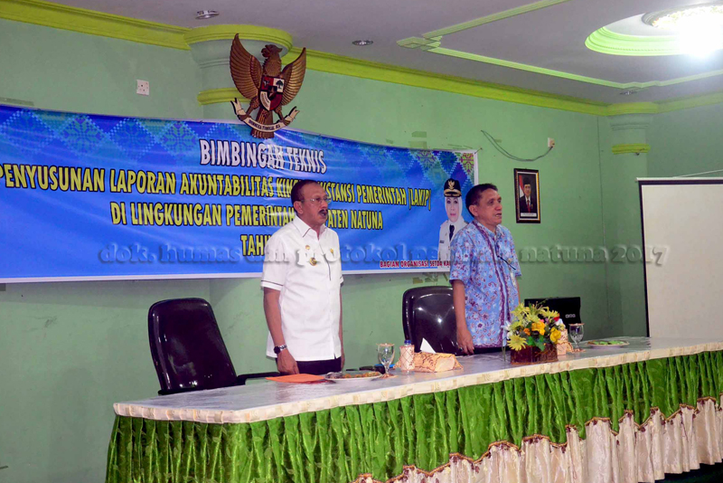 Bupati Natuna, Drs. H. Abdul Hamid Rizal,M.Si membuka secara resmi Bimbingan Teknis Penyusunan Laporan Akuntabilitas Kinerja Pemerintah (Lakip), dilingkungan Pemerintah Daerah Kabupaten Natuna Tahun 2017, di Aula Hotel Caesar, Ranai Kamis (18/05) pagi.
