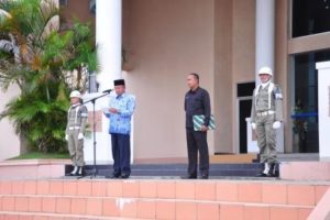 Bupati Natuna beserta seluruh jajaran SKPD dan seluruh pegawai dilingkungan Pemerintah Kabupaten Natuna melaksanakan apel 17 Hari Bulan April 2014 yang disejalankan dengan penyerahan SK CPNS tahun 2013, di Halaman Kantor Bupati Natuna, kamis (17/04) pagi.