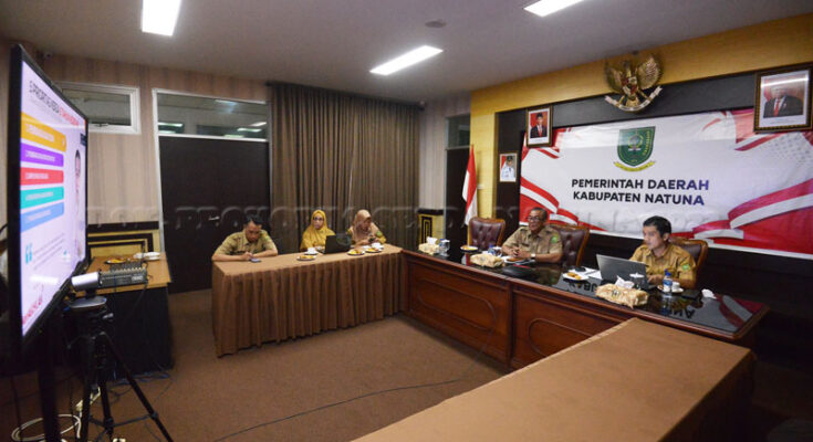Bertempat diruang video conference kantor Bupati Natuna, Asisten Administrasi Umum Sekretariat Daerah Kabupaten Natuna mengikuti secara daring audiensi penerapan sistem merit guna mendorong dan memotivasi instansi Pemerintah Daerah menerapkan sistem merit lebih baik . Senin (6/02) Pagi.