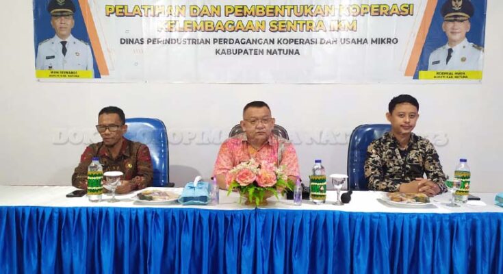 Bupati Natuna diwakili Asisten Ekonomi Pembangunan Sekretariat Daerah Kabupaten Natuna, Ir. Basri membuka acara Pelatihan dan Pembentukan Koperasi Kelembagaan Sentra IKM di Kab. Natuna Th 2023 . bertempat di Aula Hotel central, Jl. Pramuka, Ranai, kamis (27/07 ) pagi.