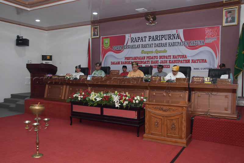 Sempena peringatan Hari Ulang TahunKabupaten Natuna ke-23, tahun 2022, DPRD kabupaten Natuna menggelar Rapat Paripurna Istimewa yang dipimpin langsung Ketua DPRD, Daeng Amhar, diikuti seluruh anggota DPRD Kabupaten Natuna, anggota Forum Koordinasi Pimpinan Daerah, tokoh masyarakat dan para awak media.