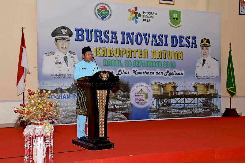 Hal diatas disampaikan Bupati Natuna, Abdul Hamid Rizal dalam sambutannya ketika membuka kegiatan Bursa Inovasi Desa Kabupaten Natuna Tahun 2018, yang diselenggarakan di Gedung Serbaguna Sri Serindit, Ranai, Rabu (26/9) pagi.