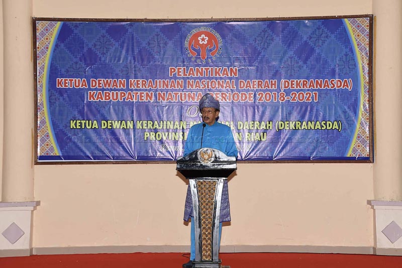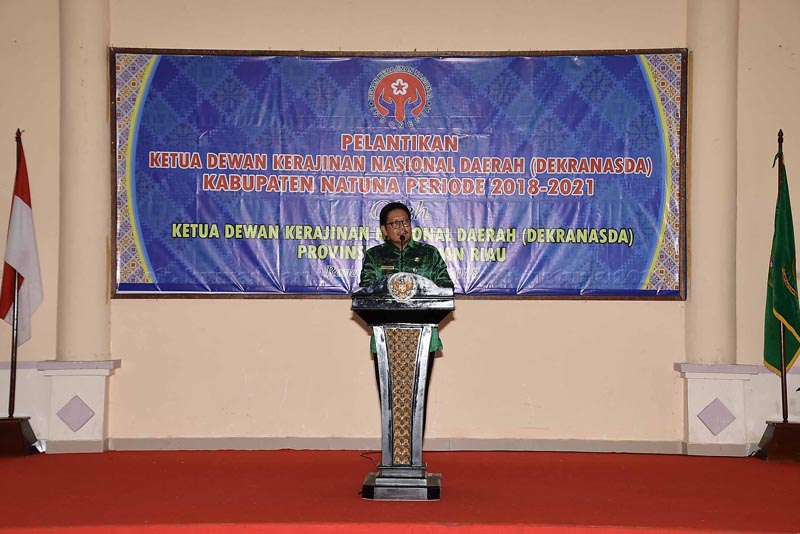 Demikian disampaikan Bupati Natuna, Abdul Hamid Rizal dalam sambutannya pada acara Pelantikan Pengurus Dewan Kerajinan Nasional Daerah (Dekranasda) Kabupaten Natuna Tahun 2018, yang digelar di Gedung Serbaguna Sri Serindit, Ranai, jum’at (12/10) siang.
