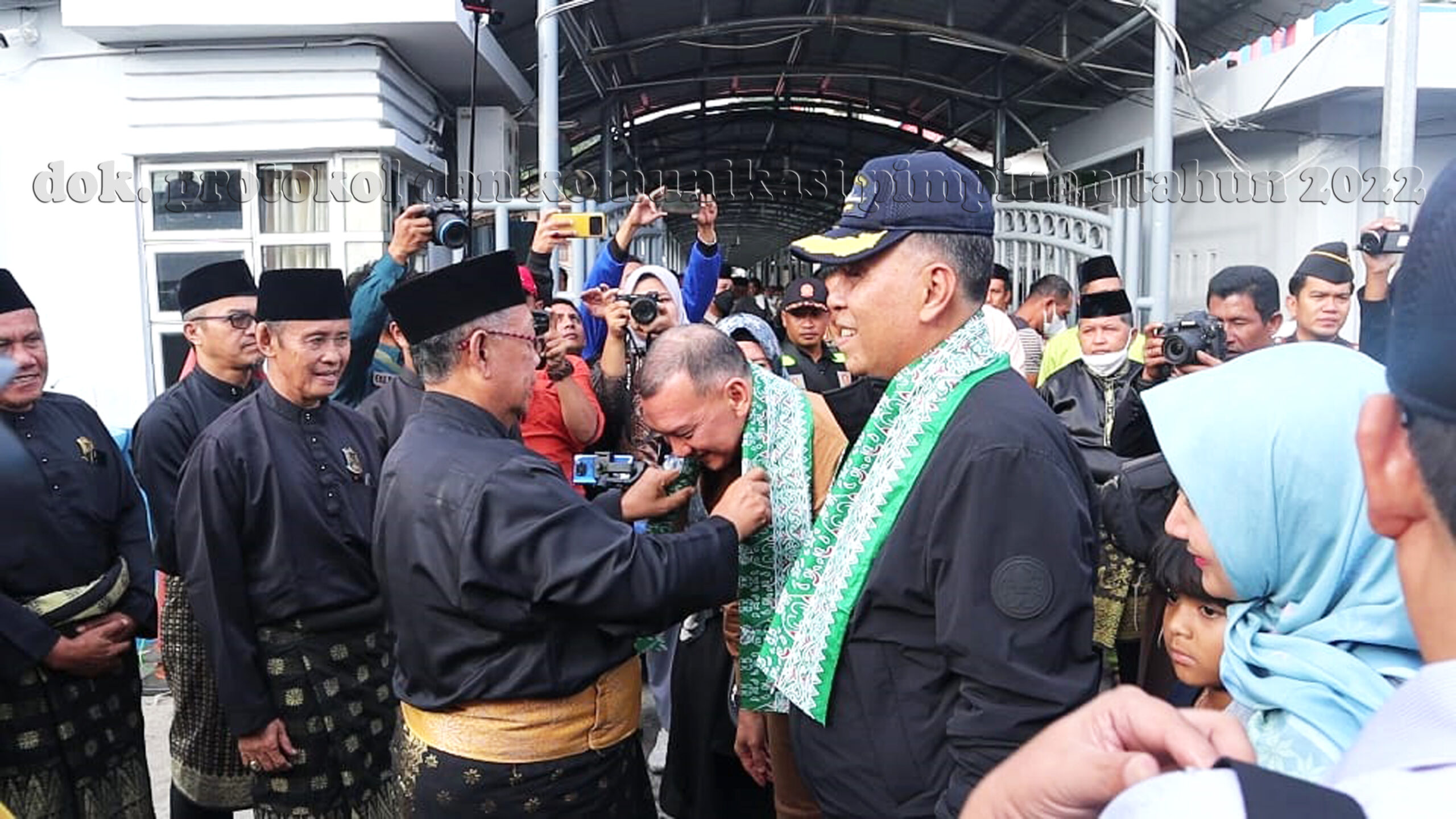 Bupati Natuna, Wan Siswandi melalui prosesi Cecah Tepung Tawar dan pengalungan kain songket pertanda ucapan selamat datang oleh pihak tuan rumah kepada seluruh rombongan.