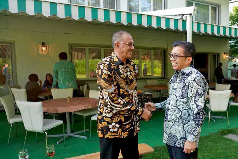 Setelah pemaparan potensi daerah selaku narasumber dalam kegiatan Rapat Koordinasi Investasi dan Ekonomi wilayah Eropa yang diselenggarakan oleh IIPC di Berg, Swiss beberapa waktu yang lalu, disela-sela agenda tersebut Bupati Natuna, Abdul Hamid Rizal memenuhi undangan makan malam dari Duta Besar Luar Biasa Republik Indonesia untuk Swiss di Rumah Dinasnya, kamis (26/7) lalu.
