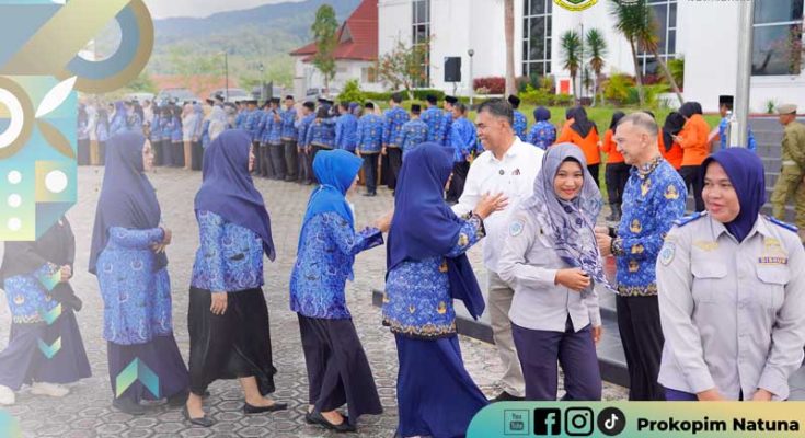 On Monday morning (17/02), the Regent of Natuna, Wan Siswandi, had the opportunity to attend as the Inspector of the February 17, 2025 Flag Raising Ceremony, held at the Natuna Regent’s Office yard, Jalan Batu Sisir Bukit Arai, Ranai.