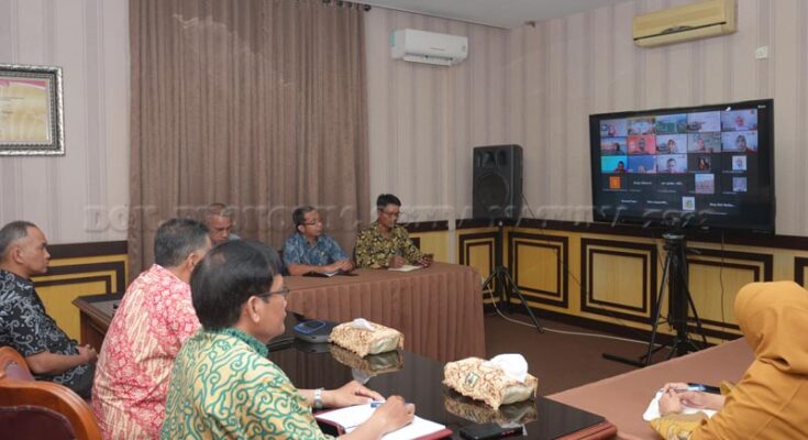 Located in the Zoom Meeting Room on Floor ll of the Regent's Office of Natuna, Thursday, (06/04) morning, the Regent of Natuna, Wan Siswandi, accompanied by the Head of the Education Office, Head of BP3D, Head of the Kepri Education Office, Head of Law and Head of Cooperation of the Natuna Regency Secretariat, held a Virtual Audience with Telkom University Jakarta regarding a cooperation plan in the field of education.