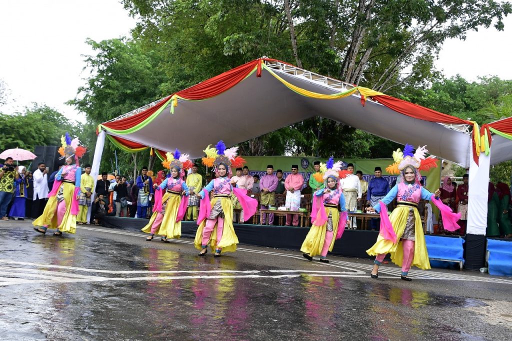 Dalam kesempatan tersebut Kabupaten Natuna yang berada pada nomor urut satu kafilah pawai menghadirkan sebuah tarian persembahan yang dibawakan oleh Sanggar Dina Mahkota, berupa tarian kreasi yang ditampilkan secara apik kan harmonis untuk menghibur para tamu VIP dan segenap pengunjung.