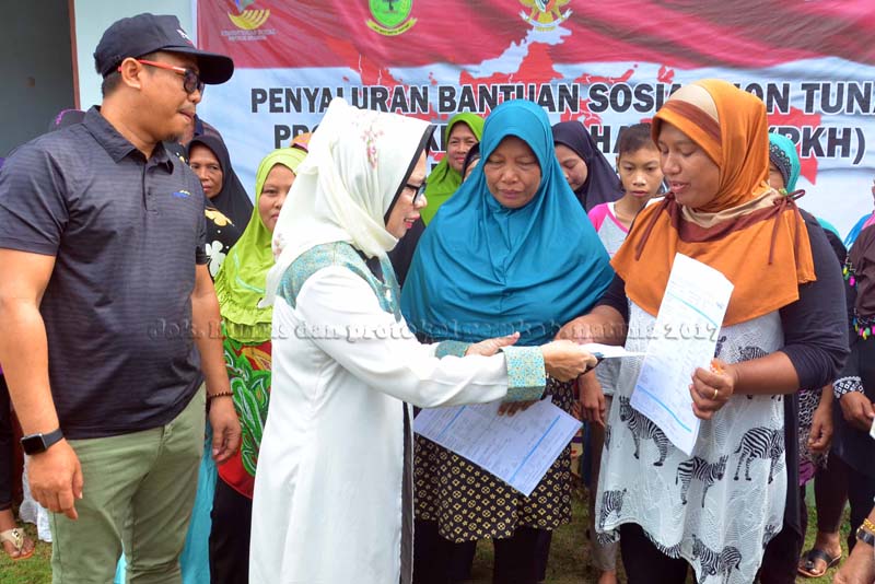 Ketua TP PKK Kabupaten Natuna juga menyempatkan dirii untuk menyerahkan penyaluran bantuan non tunai Program Keluarga Harapan (PKH) Kabupaten Natuna tahun 2017, melalui Bank Mandiri, kepada beberapa Keluarga Penerima Manfaat d Kecamatani Subi