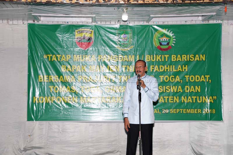 Dalam sambutannya Hamid Rizal menyampaikan selamat datang kepada Pangdam I Bukit Barisan dimana kunjungan kerja ini merupakan yang perdana setelah dilantik untuk menjalankan amanah sebagai pimpinan Kodam I/BB, dimana Kabupaten Natuna termasuk salah satu cakupan wilayah kerjanya.