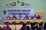 Wakil Gubernur Propinsi Kepulauan Riau, Dr. H. Suryo Respationo, SH. MA, beserta rombongan berkesempatan untuk mengunjungi dan temu ramah dengan masyarakat di Kecamatan Bunguran Timu Laut Kabupaten Natuna, di Aula Kantor Camat Bunguran Timur Laut, Minggu (17 Mei 2015) siang.