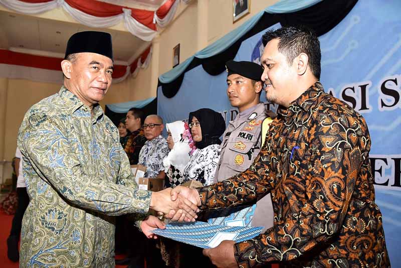 tersebut Mendikbud juga menyerahkan bantuan barupa 8 Unit Laptop dan 2 buah