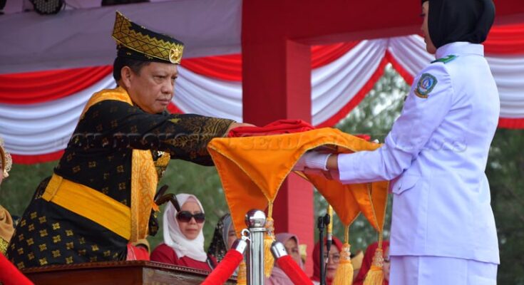 The ceremony began with the Commemoration of the Seconds of Proclamation commemorated simultaneously throughout Indonesia, followed by the reading of the Proclamation Text read by the Chairman of the Riau Islands Provincial DPRD, Jumaga Nadeak, and continued with the Raising of the Red and White Flag by 33 Paskibraka who are representatives / selections from all Regencies / Cities in the Riau Islands Province, plus TNI and Police personnel.