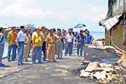 Senin (24/04) pagi, Bupati Natuna, Drs. H. Abdul Hamid Rizal,M.Si didampingi anggota Forum Koordinasi Perangkat Daerah dan beberapa pimpinan Organisasi Perangkat Daerah meninjau lokasi kejadian, menyambangi masyarakat korban musibah kebakaran tersebut untuk menyampaikan turut berduka cita, selanjutnya mengadakan pertemuan dengan Camat dan Unsur Pimpinan Kecamatan Bunguran Barat untuk membahas permasalahan penanggulangan musibah kebakaran yang terjadi.