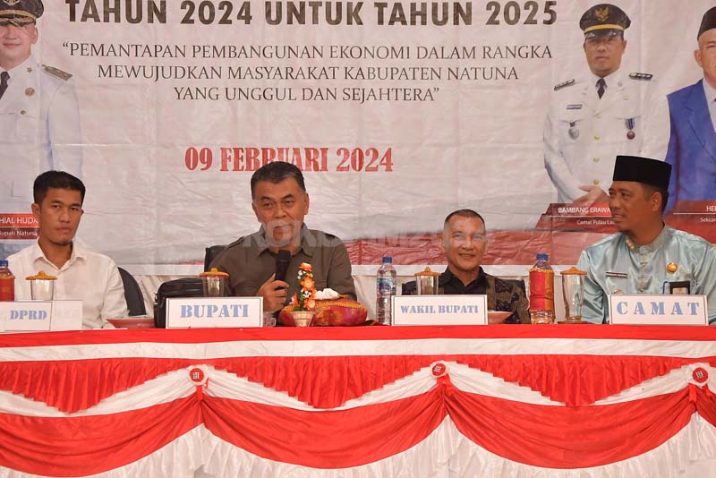Agenda lawatan Musrenbang Pemkab Natuna berhujung di Kecamatan Pulau Laut, Bupati Natuna, Wan Siswandi membuka secara resmi kegiatan Musyawarah Perencanaan Pembangunan (Musrenbang) Tingkat Kecamatan Pulau Laut Tahun 2024, untuk Tahun Anggaran 2025, Jumat (9/2) Siang, bertempat di Gedung Serbaguna Desa Tanjung Pala.