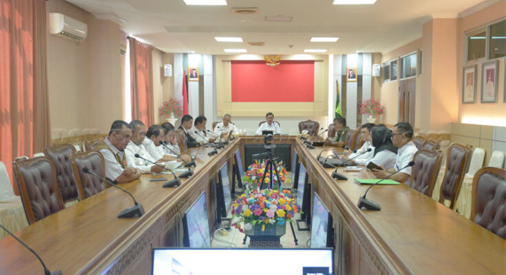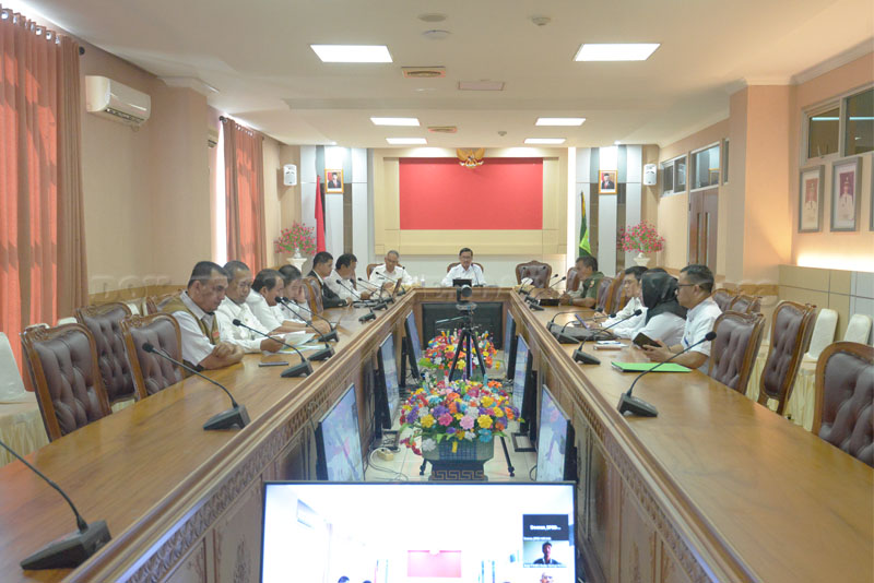 The Regent of Natuna, represented by the Regional Secretary, Boy Wijanarko Varianto, held a Coordination Meeting regarding the results of geological research on Serasan Island virtually, from the 2nd Floor Meeting Room of the Natuna Regent's Office, Jalan Batu Sisir Bukit Arai, Ranai, Wednesday (5/4) afternoon.