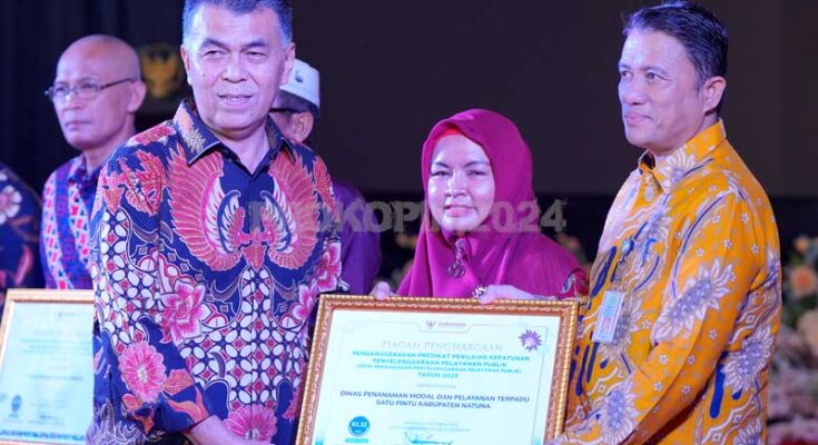 Furthermore, Wan Siswandi also handed over the award of the evaluation results of compliance with public service standards from the Ombudsman RI in 2023 to 7 winners, namely: One-Stop Investment and Integrated Services Office, Social Office, Tanjung Health Centre, Bunguran Tengah Health Centre, Population and Civil Registration Office, Health Office and Education Office. (Pro_kopim/Irles)