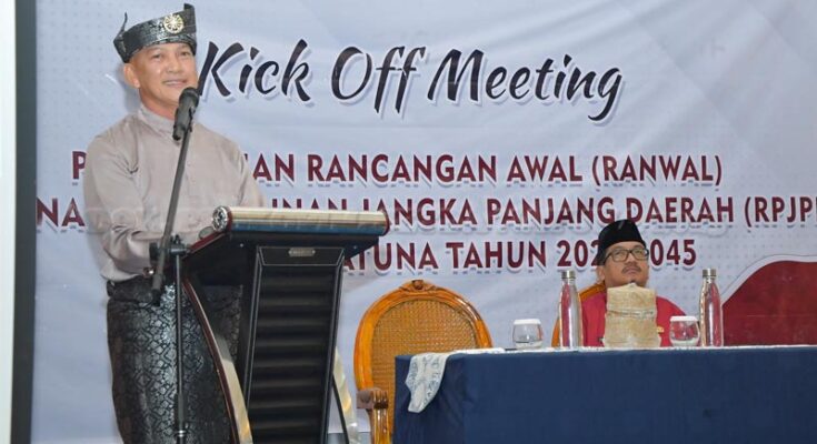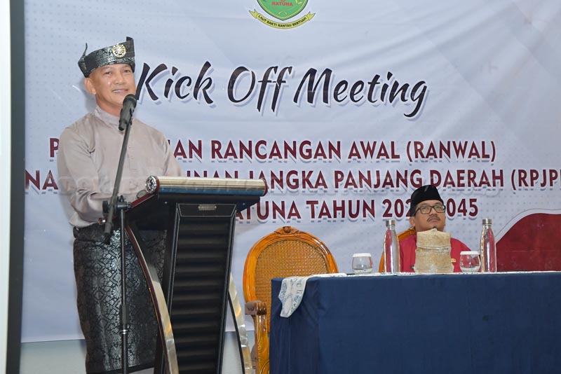 The Vice Regent of Natuna, Rodhial Huda, opened the Kick-Off Meeting for the Preparation of the Regional Long-Term Development Plan (RPJPD) for 2025-2045 Natuna Regency, held at the Gajah Mina Adiwana Jelita Sejuba Ballroom, Sepempang Village, Bunguran Timur District, Friday (22/09) morning.