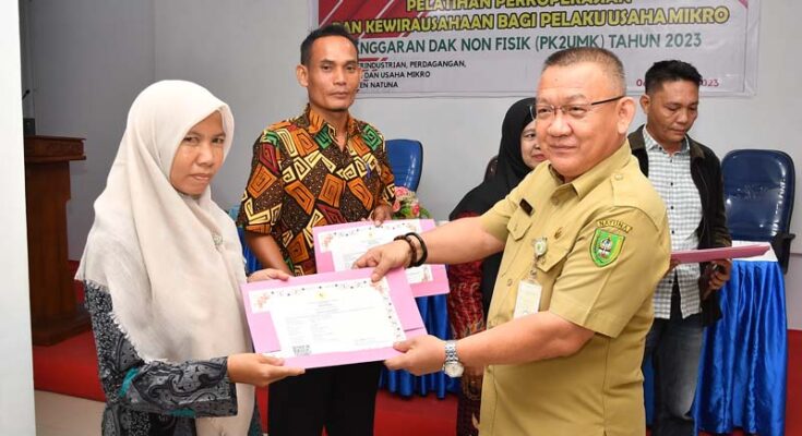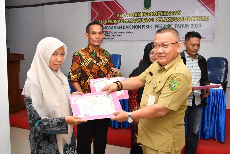 The Regent of Natuna, represented by the Economic Development Assistant, Basri, officially opened the Cooperatives and Entrepreneurship Training activities for Micro Business Actors through the PK2UKM Non-Physical Special Allocation Fund for Fiscal Year 2023. located at the Trend Central Hotel Hall, Pramuka Street, Ranai Tuesday (06/06) morning.