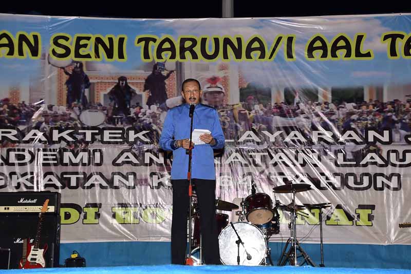kegiatan Pagelaran Seni tersebut menampilkan berbagai pertunjukan, baik nyanyian Vokal Group, Tarian daerah sampai Group Band yang ditampilkan oleh para Taruna-taruni AAL yang didukung pula oleh peserta didik dari SMA Negeri 1 Bunguran Timur dan SMA Negeri 2 Bunguran Timur. (Humas_Pro/Arf)