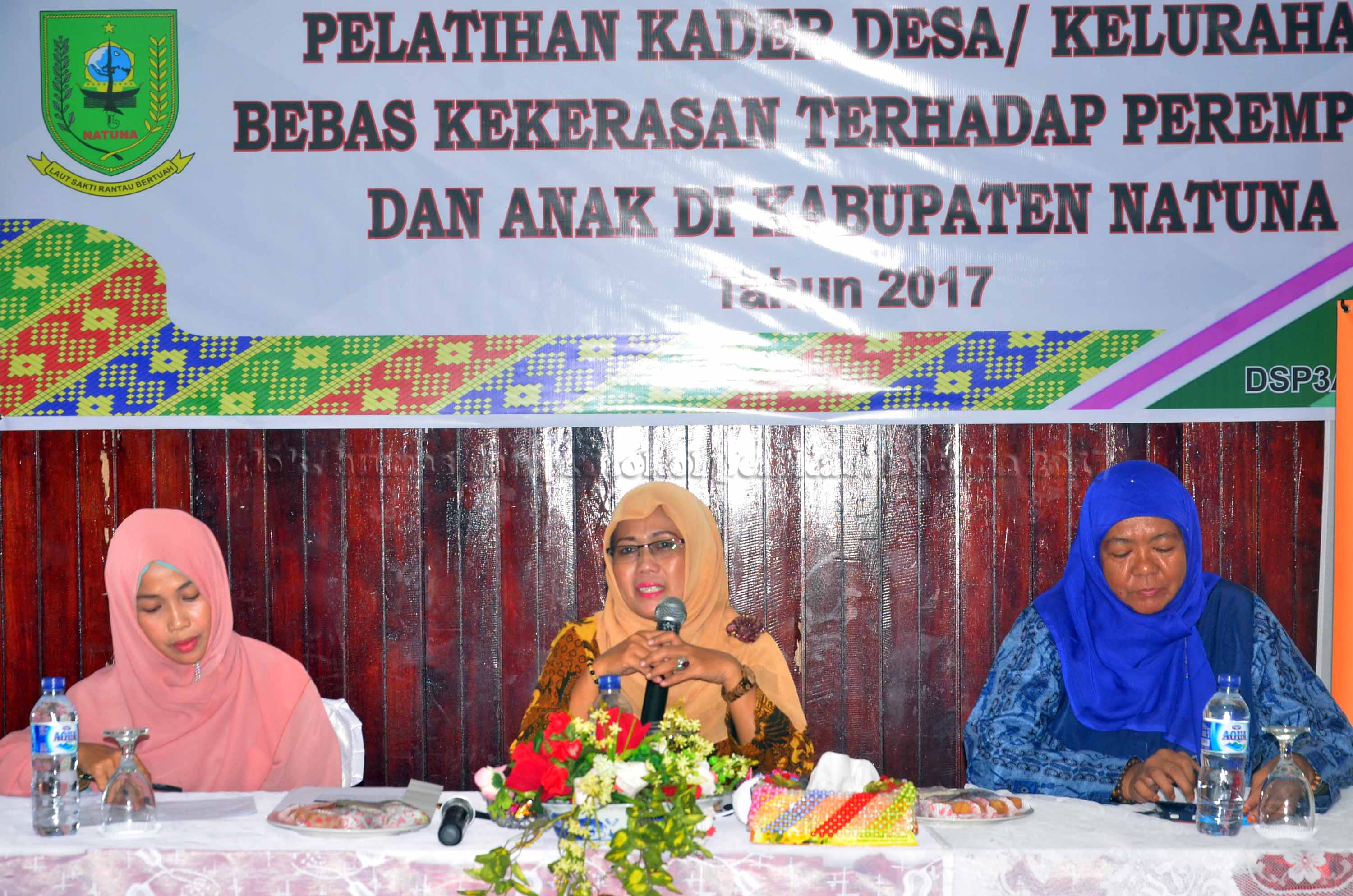 Wakil Bupati Natuna, Dra. Hj. Ngesti Yuni Suprapti,MA selaku Ketua P2TP2A Kabupaten Natuna yang didampingi Ketua P2TP2A Provinsi Kepri Sofiar, hadir sebagai Narasumber pada acara Pelatihan Kader Desa/Kelurahan Bebas Kekerasan Perempuan dan Anak yang diselenggarakan di Ruang Pertemuan Rumah Makan Sisi Basisir Ranai, Selasa (8/8) pagi.