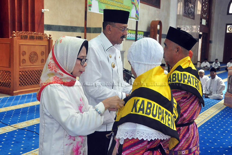 Bupati Natuna, Drs.H.Abdul Hamid Rizal.,M.Si melepas secara resmi Jamaah Calon Haji (JCH) Kabupaten Natuna Tahun 2017 di Masjid Agung Natuna,Ranai, sabtu, (29/07) pagi.