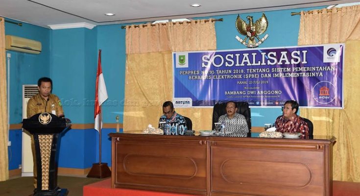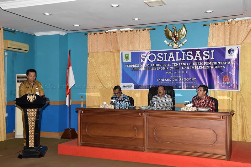 Hal ini disampaikan Bupati Natuna, Abdul Hamid Rizal ketika membuka kegiatan Sosialisasi Peraturan Presiden nomor 95 tahun 2018, tentang Sistem Pemerintahan Berbasis Elektronik (SPBE), bertempat di Aula Kantor Sekretariat Daerah Kabupaten Natuna, Jalan Batu Sisir Bukit Arai, Ranai, selasa (23/07) pagi, dihadiri oleh segenap pimpinan Organisasi Perangkat Daerah.
