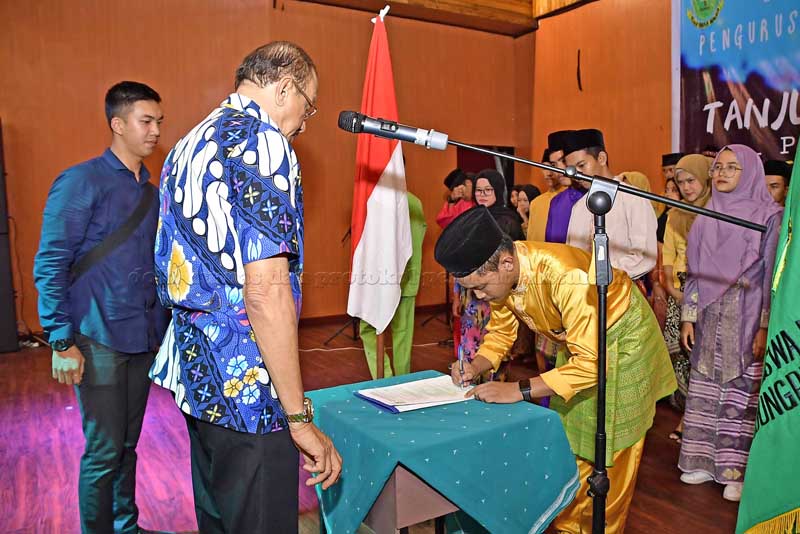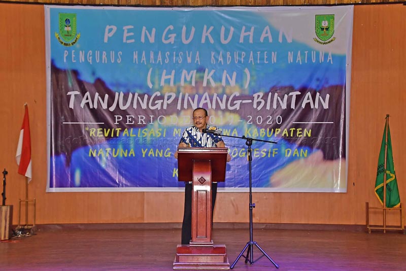 Bupati Natuna Drs. H. Abdul Hamid Rizal M.Si  mengukuhkan pengurus Himpunan Mahasiswa Kabupaten Natuna (HMKN) Tanjungpinang - Bintan priode 2019-2020 di Gedung Aisyah Sulaiman Jalan Agus Salim Tanjungpinang, Senin 29/4/2019.