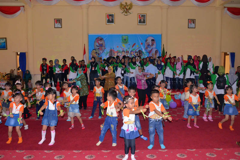 Pada kesempatan yang sama Ketua Pelaksana /Kepala Dinas Sosial Pemberdayaan Perempuan dan Perlindungan Anak, Hj. Kartina Riauwita S.Sos menyampaikan bahwa Peringatan Hari Anak Nasional tahun ini mengangkat tema "Perlindungan Anak dimulai dari Keluarga" bertujuan agar segenap komponem bangsa dapat mewujudkan kesejahteraan anak dengan menghormati dan menjamin hak-hak anak terhadap pemenuhannya tanpa perlakuan diskriminatif.