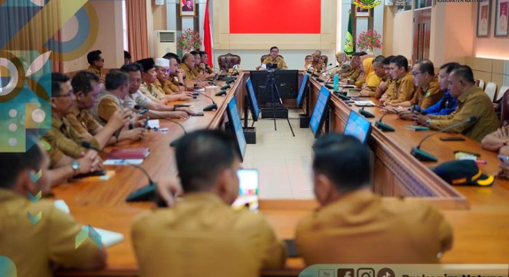 Rapat tersebut dipimpin Sekretaris Daerah Kabupaten Natuna, Boy Wijanarko Varianto, dihadiri seluruh pimpinan Organisasi Perangkat Daerah dilingkungan Pemerintah Kabupaten Natuna.