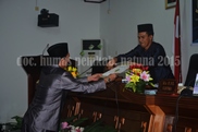 Masing-masing fraksi pada akhirnya dapat menerima dan menyetujui Laporan Keterangan Pertanggung jawaban Bupati Natuna TA 2014 dan Rancangan Peraturan Daerah Kabupaten Natuna.