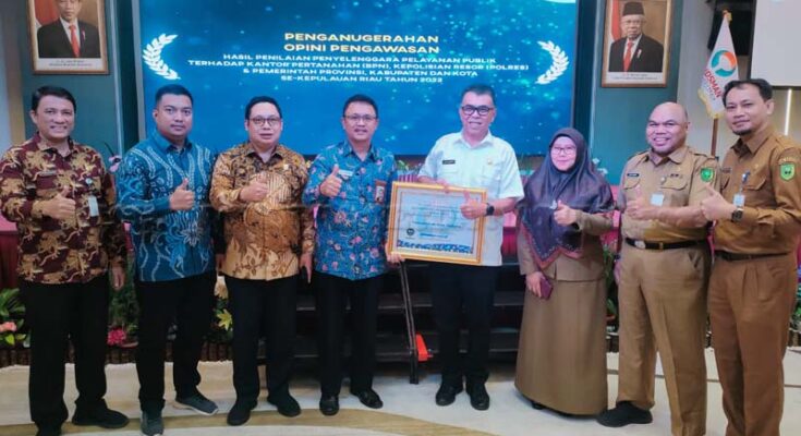The Regent of Natuna, along with several other regional heads, received the First Village Service Badge award based on the results of updating data on the development of village status that reached the status of independent, developed, and developing villages in 2022.