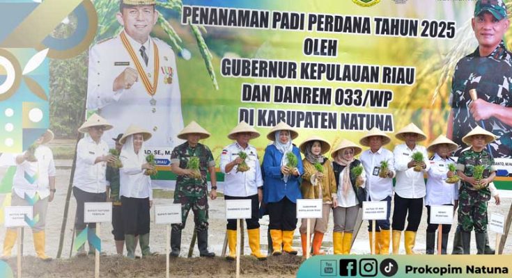 Located in Bunguran Batubi District, Regional Secretary of Natuna, Boy Wijanarko Varianto, accompanied Governor of Riau Islands, Ansar Ahmad, in the first rice planting event in Natuna Regency on Wednesday afternoon (12/02).