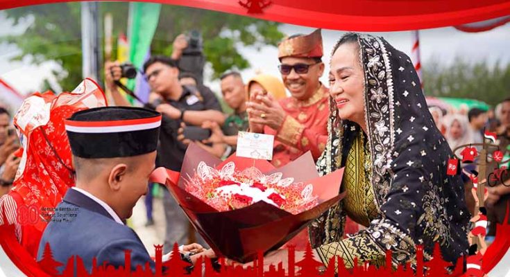 Bupati Natuna Cen Sui Lan bersama jajaran Forkopimda hadir langsung menyambut para peserta pawai yang menampilkan beragam atraksi seni dan budaya.