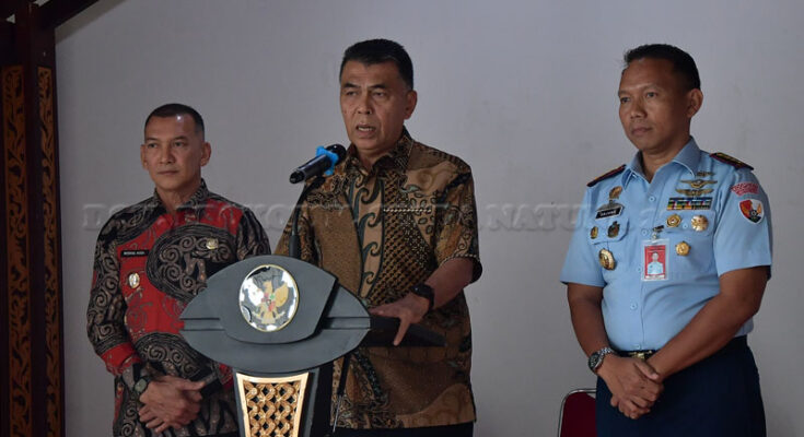 Held in the Lobby of the Natuna Regent's Office, Batu Sisir St. Bukit Arai, Ranai, Thursday (02/03) morning, the Regent of Natuna, Wan Siswandi along with the Commander of Raden Sadjad Airbase, Col. (PnB) Jajang Setiawan, accompanied by the Vice Regent of Natuna, Rodhial Huda, held a Press Conference on the recruitment plan for TNI Air Force Personnel in 2023.