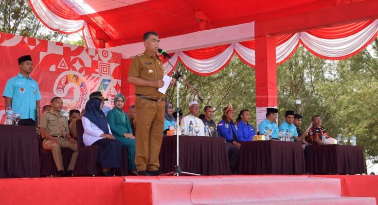 Located at Piwang Beach, Batu Hitam Village Ranai, Monday, (30/10) morning, the Regent of Natuna, Wan Siswandi acted as the Inspector of the Commemoration of the 95th Youth Pledge Day 2023, Natuna Regency level.