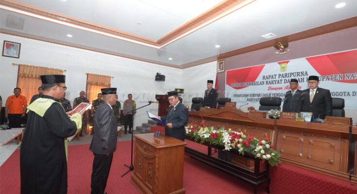 Last Friday (25/3), the Regent of Natuna, Wan Siswandi attended the Plenary Meeting of the Regional People's Representative Council (DPRD) of Natuna Regency with the agenda of Oath Taking and Inauguration of Inter-Time Substitution (PAW) of DPRD Members from the PDI-P party for the remaining period of 2019-2024.