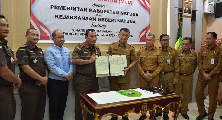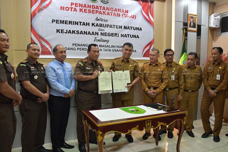 On Tuesday Morning (24/01), the Government of Natuna and the Natuna District Prosecutor's Office signed a Memorandum of Understanding (MoU) on the Handling of Legal Issues in the Civil and State Administrative Sector, at the Meeting Room, 2nd Floor of the Natuna Regent's Office,
