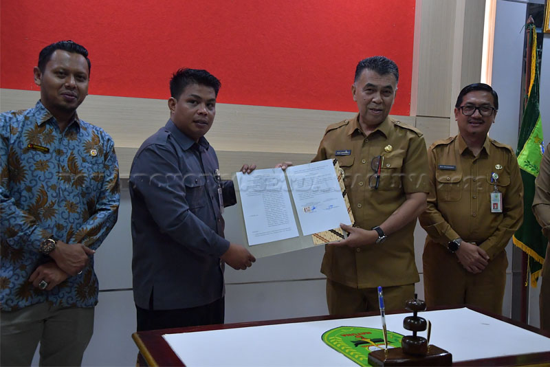 The Regent of Natuna, Wan Siswandi signed the Regional Grant Agreement Script (NPHD) for the 2024 Simultaneous Elections with the Natuna Regency KPU and Election Supervisors which was held in the Meeting Room of the Natuna Regent's Office, Jalan Batu Sisir Bukit Arai, Monday (23/10) morning).