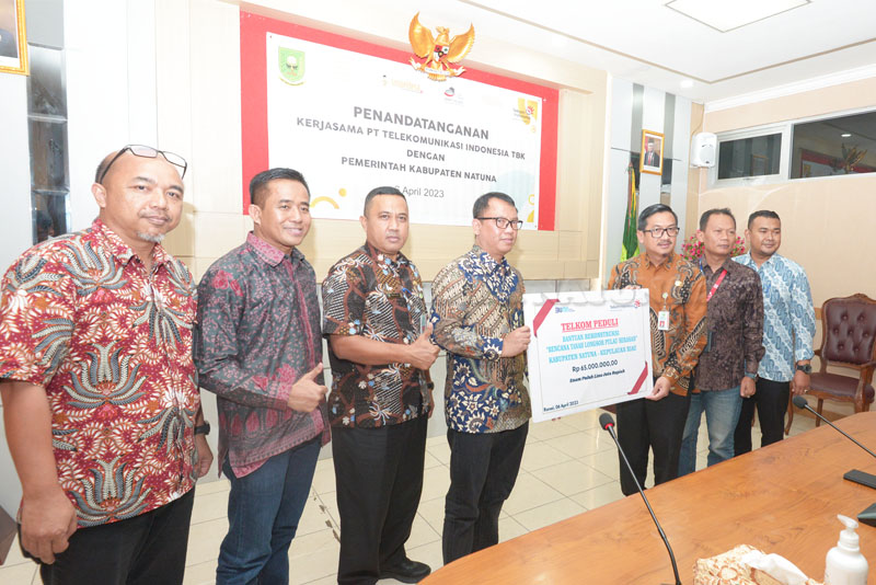 In addition to the signing of the telecommunication cooperation, PT Telekomunikasi Indonesia Tbk also handed over the Serasan Landslide Disaster Relief Charity Programme and Kaum Dhuafa Charity Programme which were handed over to Village Heads throughout Natuna Regency to be further distributed to people in need.