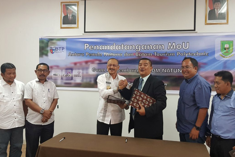 Hal ini disampaikan oleh Bupati Natuna saat penandatangan MoU kerjasama antara Pemerintah Kabupaten Natuna dg Batam Tourism Politechnic (BTP) (25/9/17), di Komplek Tiban Ayu, Batam.