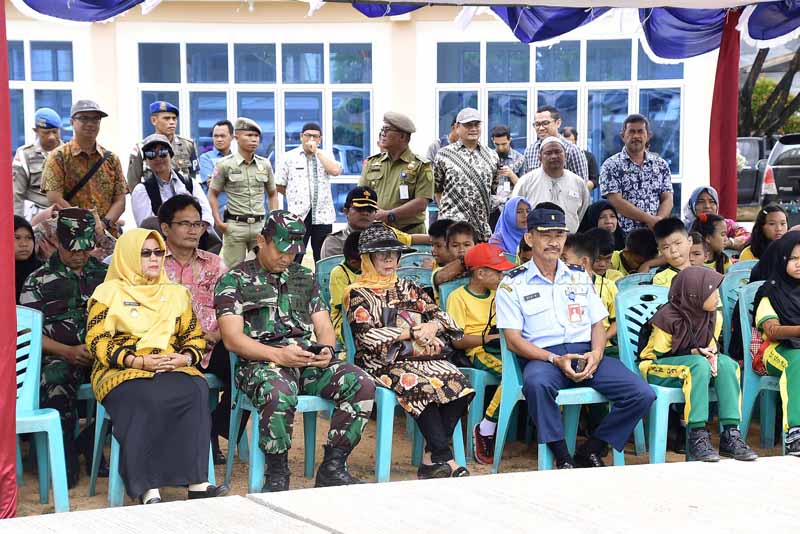 Peresmian Taman Bermain dan Fasilitas Olahraga ini ditandai dengan Penandatanganan Berita Acara Serah Terima dan pengguntingan pita oleh Wakil Bupati Natuna yang disaksikan oleh segenap undangan dan pengunjung yang hadir (Humas_Pro/ARF)