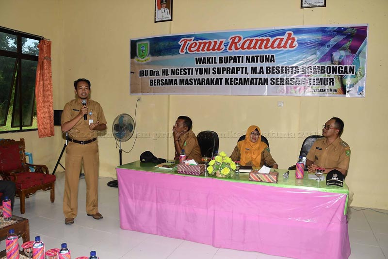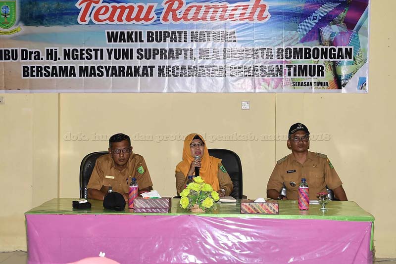 Dalam salah satu agenda Kunjungan Kerja (Kunker) Pemerintah Kabupaten Natuna di Pulau Serasan, Wakil Bupati Natuna, Ngesti Yuni Suprapti mengadakan pertemuan dengan masyarakat Kecamatan Serasan yang diselenggarakan digedung pertemuan masyarakat Desa Tanjung Setelung Kecamatan Serasan, selasa (09/10) pagi.